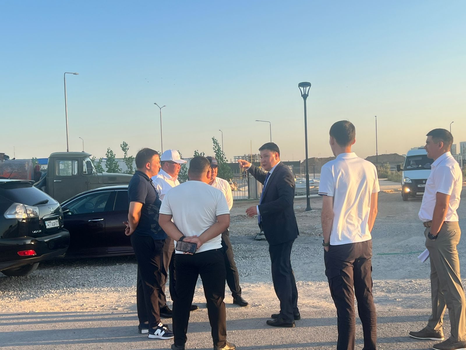 Алдымен М.Төлебаев көшесінде бой көтеріп жатқан спорт кешеніне барды. Жоба құны 595,8 млн. теңгені құрайтын нысанның құрылысы өткен жылы басталған. Жаңа нысан биыл аяқталады деп күтілуде.